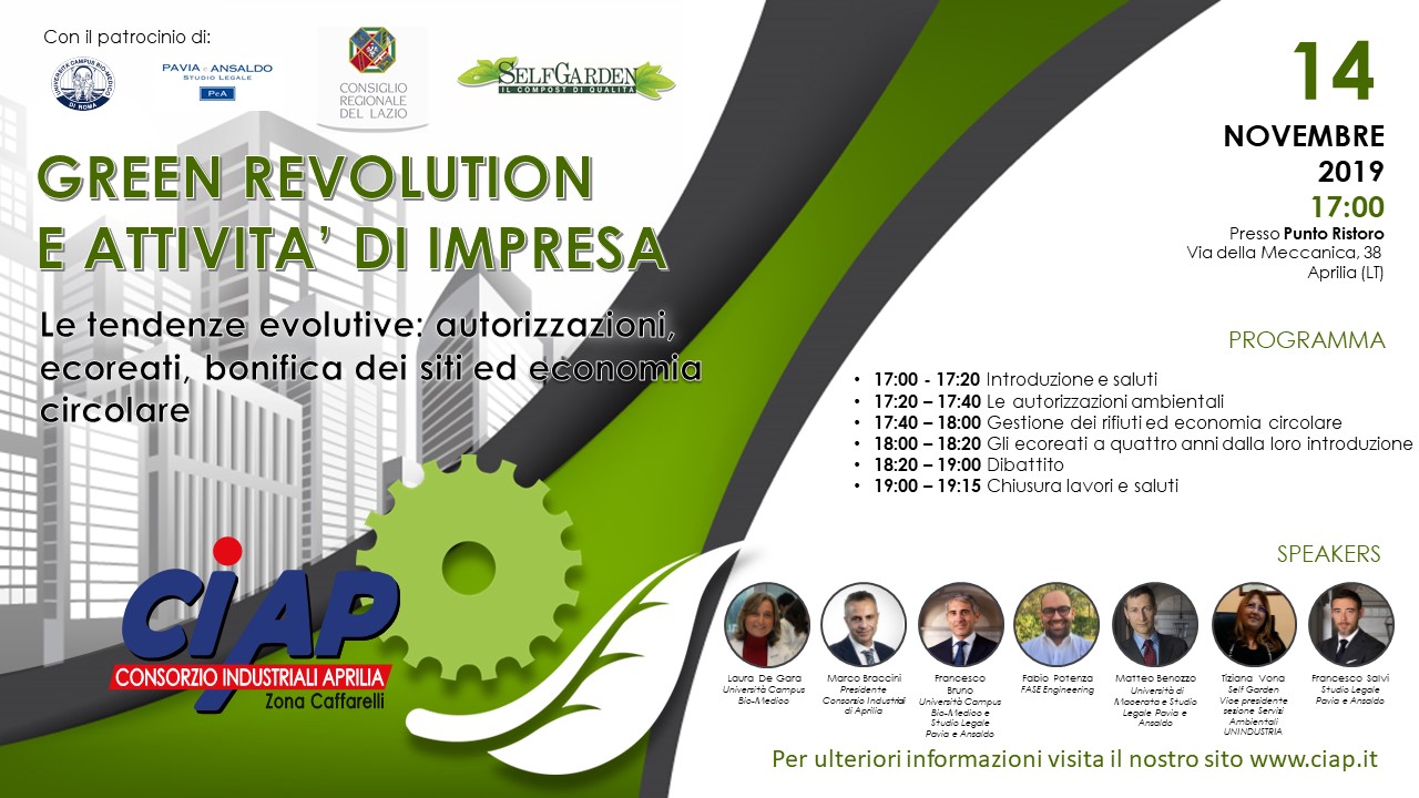 "Green Revolution and Business Activities" - Evolutionary Trends The C.I.AP. Consortium wants to be an active player in improving the quality of life. Environment and industry are often at odds, but now is the time to change this trend and turn it into a positive synergy. With the patronage of the Lazio Region, University [...]